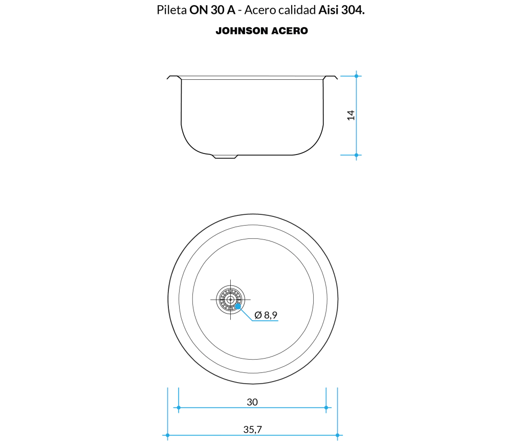 Descripción de producto: Pileta Acero Inoxidable Cocina Simple ON30A L304 Johnson Aceros