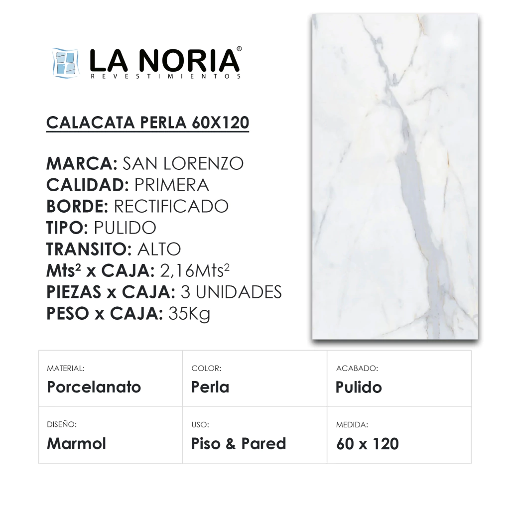 · Producto: Porcelanato Calacata Perla San Lorenzo 60x120 1ra Pulido