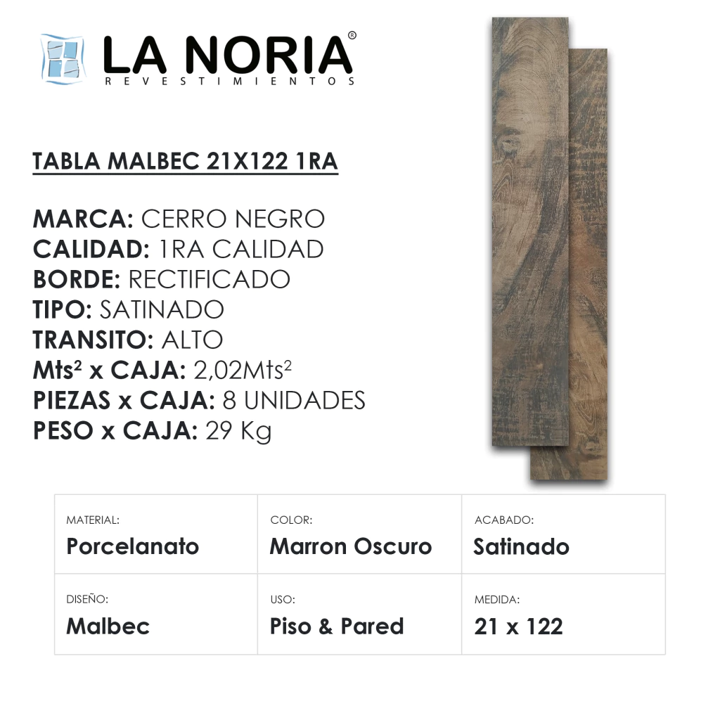 · PRODUCTO: Porcelanato Tabla Malbec Cerro Negro 21x122 1ra
